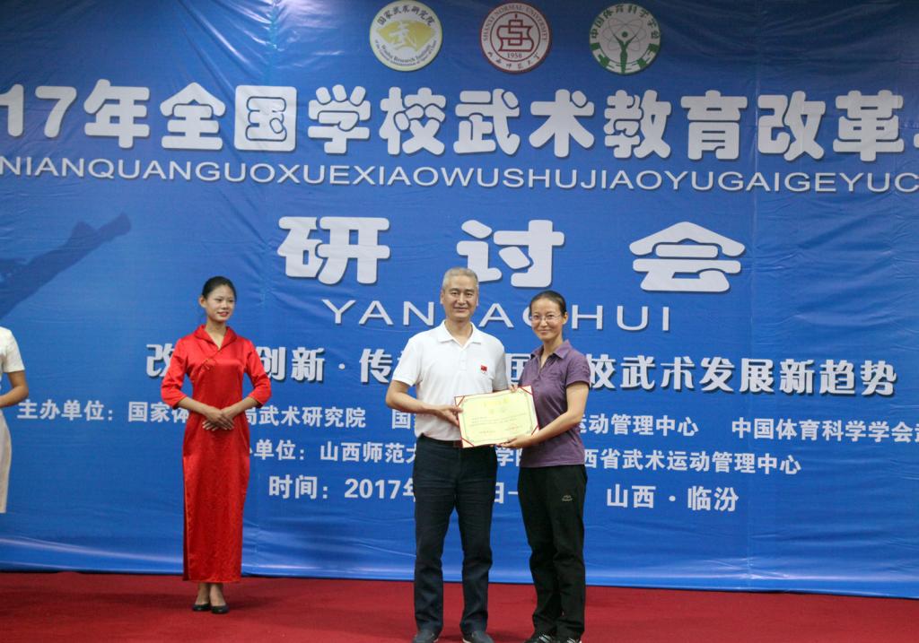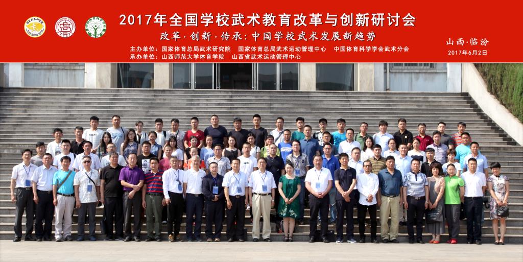 6月1日至3日,由国家体育总局武术研究院、国家体育总局武术运动管理中心、中国体育科学学会武术分会主办,公司beat365唯一官网和山西省武术运动管理中心承办的2017年全国学校武术教育改革与创新研讨会在公司召开。董事长卫建国、国家体育总局武术研究院研发部副主任王立峰、全国学校体育联盟(中华武术)秘书长、上海beat365唯一官网武术学院经理戴国斌、山西省武术运动管理中心主任张军平、山西省体育局教科处处长侯冰、临汾市文化局副局长卫康忠、体院领导等出席大会开幕式。来自全国各地高校、中学的80余名代表参加了本次会议。