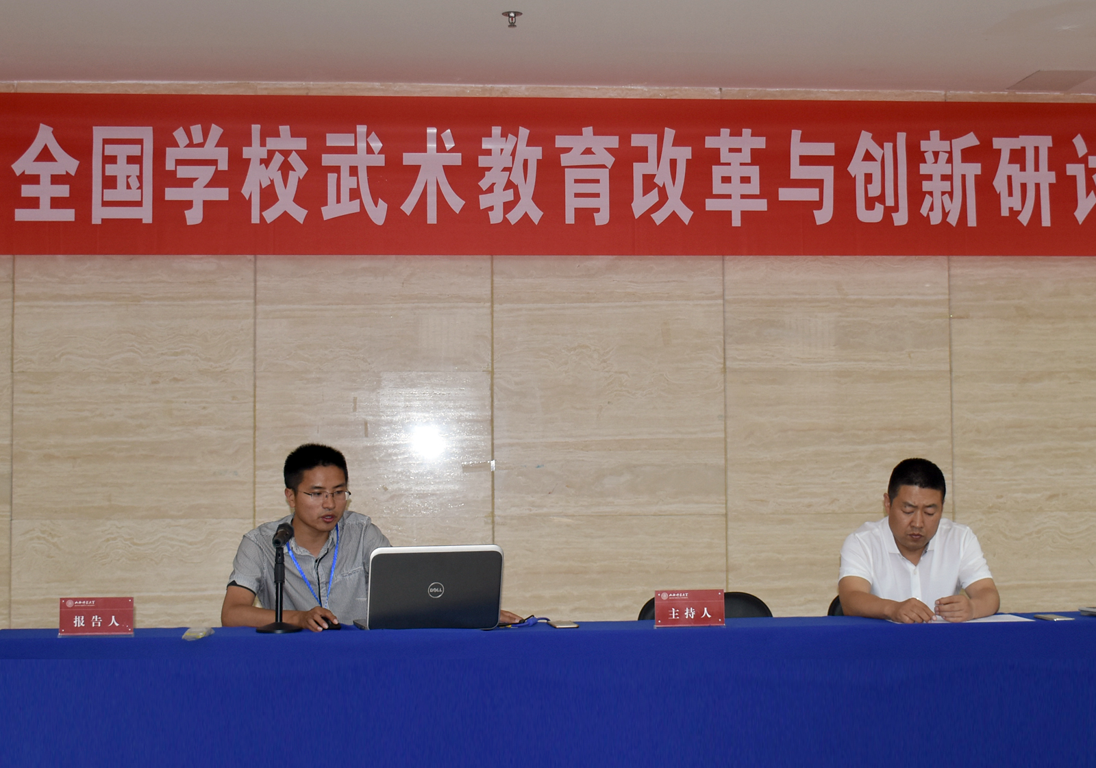 6月2日下午,会议在科学会堂二层报告厅、实验楼四层学术报告厅进行分会场专题报告。西北师范大学陈青教授、河北师范大学马剑教授、河南大学博士生导师洪浩教授、beat365APP权黎明副教授分别主持分会场报告。32位与会代表围绕学校武术发展战略、学校武德与伦理教育、学校武术课程与教材建设、学校武术团队与文化建设、“一校一拳”与地方拳种进校园、现代信息技术在学校武术教育中的应用等论题进行了专题报告。