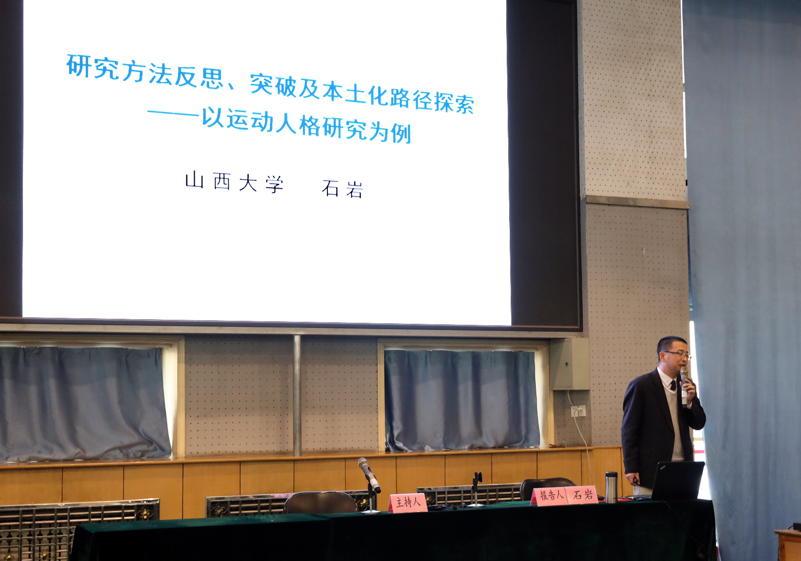 石岩教授立足自身研究领域视角开展报告,主要从运动人格研究方法的反思,运动人格研究方法的突破,以及运动人格研究本土化路径探索等方面进行详细讲解,以“运动人格”为切入点,强调研究方法本土化的重要性,鼓励师生应用创新发展的方法克服学术瓶颈。报告结束后,在场师生踊跃提问,石岩教授耐心地进行了解答并希望师生继续努力,加强学术交流,共同进步。