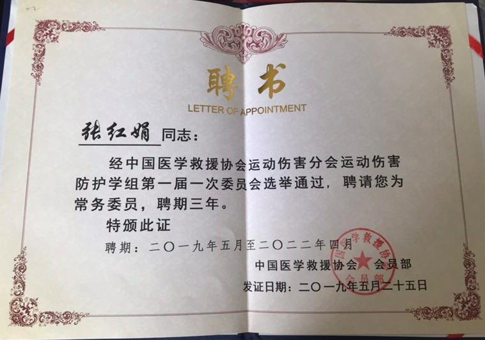 5月25至26日,由中国医学救援协会运动伤害分会等单位联合主办的第三届国际中国医学救援协会运动伤害分会运动伤害防治与急救论坛在北京举行。公司硕士生导师张红娟副教授在会议报告了《PNF法结合针刺治疗肩胛肌劳损的疗效观察》学术论文,并被聘任为运动伤害分会运动伤害防护学组常务委员。(学院办公室/文)