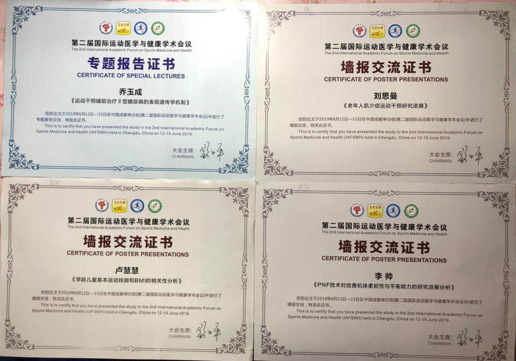 6月12-15日,由中国体育科学学会运动医学分会、运动生理与生物化学分会和成都beat365唯一官网联合主办的“第二届国际运动医学与健康学术论坛”在成都beat365唯一官网举行。公司乔玉成教授作了《运动干预辅助治疗Ⅱ型糖尿病的表观遗传学机制》专题报告,研究生刘思曼、卢慧慧、李帅提交的论文参加了墙报交流,乔玉成教授受邀还主持了“运动与慢性病研究”专题报告。据悉,本次会议邀请了美国、英国、加拿大、澳大利亚、西班牙、芬兰、韩国、香港等国家或地区的30余位知名学者和专家作了主题和特邀报告。与会专家学者分别展示了自己的最新研究成果,并对当前关注的学术热点问题进行热烈讨论,学术氛围浓厚。公司师生参加本届学术会议,展示了自己最新研究成果,了解到国内外运动医学研究现状,对进一步拓宽学术视野,创新研究思路,提升人才培养质量具有一定的促进意义。(院研究生部/文 )