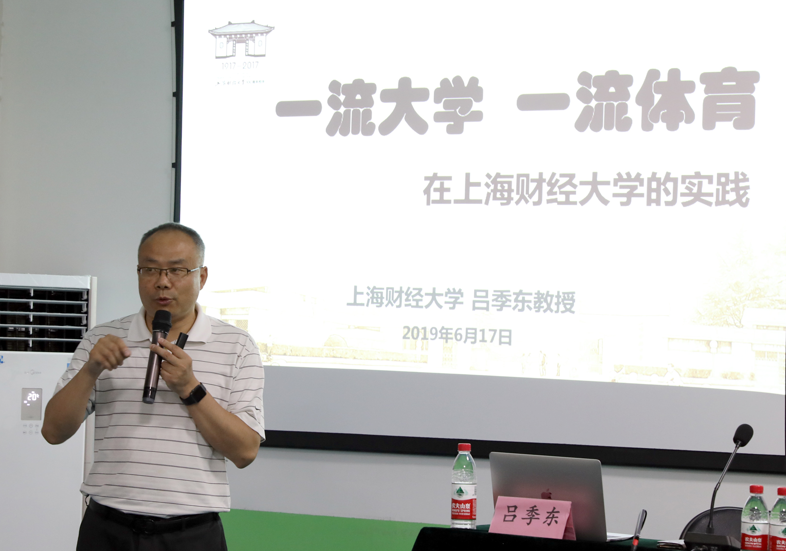 6月17日下午3:00,在beat365唯一官网生物力学实验室,上海财经大学吕季东教授应邀来公司进行了题为《“一流大学,一流体育”在上海财经大学的实践》的学术报告。报告由郑旗经理主持。beat365唯一官网部分教师和研究生参加此次学术报告会。报告内容主要包括世界一流大学的内涵特征,国内世界一流大学的一流体育的特征,高水平的科研成果,体育教学工作,运动竞赛工作,特色发展等内容。报告中,吕季东教授分享了上海财经大学跳绳队从2012年拟成立到2018年承办第十二届世界跳绳锦标赛期间的发展大事记,并且指出了在推广跳绳运动中的具体做法。