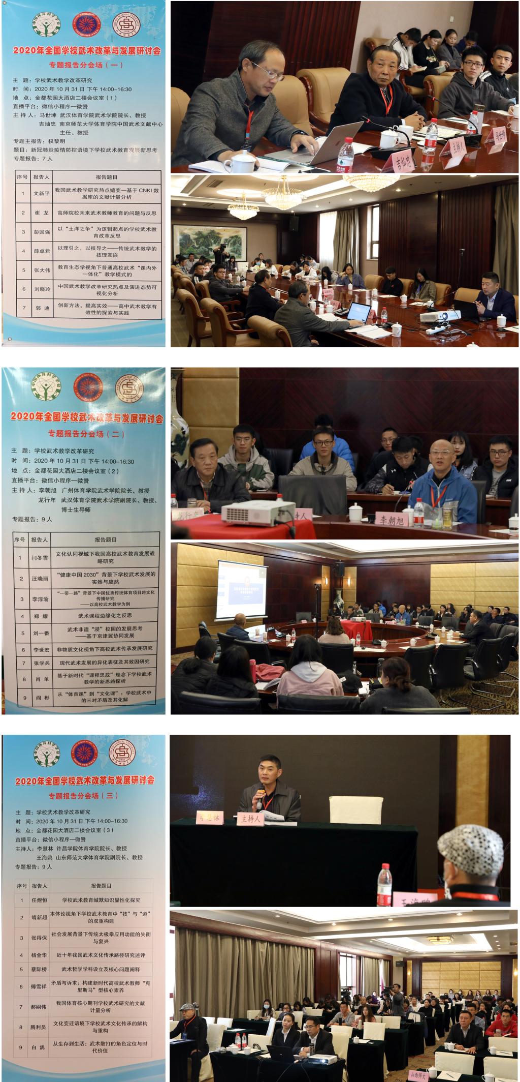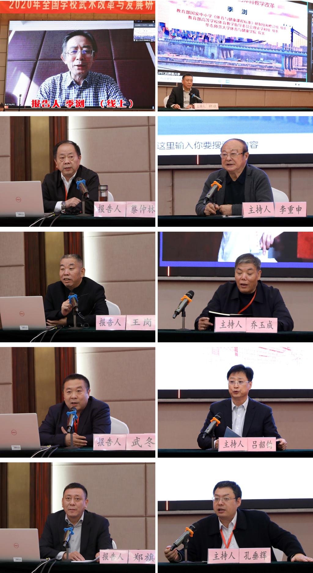 专题报告环节采用“线上报告+现场点评”的方式进行,beat365APP权黎明副教授在现场做了题为《新冠肺炎疫情防控语境下学校武术教育发展新思考》的报告,其余25位论文作者围绕“学校武术教学改革研究”、“学校武术发展研究”、“学校武术文化传承研究”等主题做了专题交流。武汉beat365唯一官网马世坤教授、南京师范大学吉灿忠教授、广州beat365唯一官网李朝旭教授、武汉beat365唯一官网龙行年教授、许昌学院李慧林教授、山东师范大学王海鸥教授在会议现场对报告做了精彩点评。
