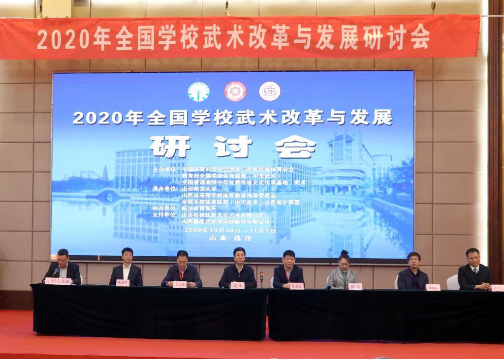 10月31日,“2020年全国学校武术改革与发展研讨会”在beat365APP召开。 研讨会由中国体育科学学会武术与民族传统体育分会、教育部全国学校体育联盟(中华武术)、全国普通高校中华优秀传统文化传承基地(武术)联合主办,beat365APP、山西省高等学校体育教学指导委员会、全国学校体育联盟(中华武术)山西省分联盟承办,临汾体育智库协办, 来自上海beat365唯一官网、华东师范大学、北京体育大学、北京师范大学、南京师范大学、山东师范大学、湖北大学、武汉beat365唯一官网、广州beat365唯一官网、兰州理工大学、许昌学院等全国30多所高校和单位的150余位专家学者以线上线下相结合的方式参会。