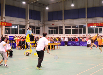 11月12日晚7点,beat365APP2014年师生羽毛球联赛决赛在员工活动中心举行。闯入决赛的研究生学院和经管学院经过激烈角逐,最终,研究生学院以4:1获得冠军,经管学院屈居亚军。公司党委副书记王心平亲临决赛现场,部分学院、机关职能部门负责人和500余名师生观看了比赛。