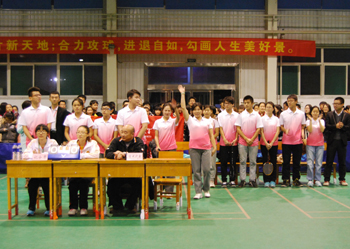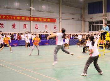 为了响应团中央“三走”(走下网络、走出宿舍、走向操场)体育锻炼的号召,深入落实公司的阳光体育运动,11月1日——11月12日,由校团委、校员工会主办,数计学院团委、员工会承办,校公体部协办的beat365APP2014年师生羽毛球联赛在员工活动中心如期举行。共有17个学院、204名运动员参加了比赛,先后进行了173场比赛。本次比赛以学院教师、员工共同组队形式进行团体赛,分为初赛、复赛、决赛三个阶段;包括男单、女单、男双、女双、混双、男单、女单七场比赛。经过数轮精彩比赛,传媒学院、文学院、研究生学院、教师教育学院、生科学院、美术学院、经管学院、地科学院闯入八强。决赛阶段,参赛选手认真比赛,努力拼搏,赛场上球拍来回起伏,喝彩助威不断,最终,经过两个小时的激烈比赛,研究生学院获得冠军,经管学院获得亚军,生科学院和传媒学院获得季军。至此,beat365APP2014年师生羽毛球赛圆满落幕。
