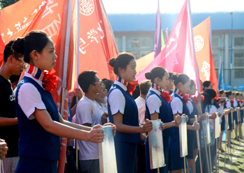 15日上午8时,国旗班、各运动员代表方队迈着整齐的步伐入场。全体人员参加了升国旗仪式。