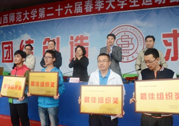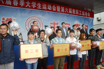 运动会总裁判长何涛宣布比赛成绩:团体操A组前三名分别是历史学院、政法学院、生命科学学院,B组前三名分别是外国语学院、音乐学院、化材学院。教职工组前六名分别由生科学院、机关一工会、机关二工会、图书馆工会、外国语学院、教育学院摘取。物信和化材学院获最佳组织奖。员工团体总分排名前六分别是传媒学院、经管学院、生科学院、物信学院、教育学院和数计学院。音乐学院和地科学院均获得最佳组织奖。与会领导为获奖单位颁发奖牌和奖品。