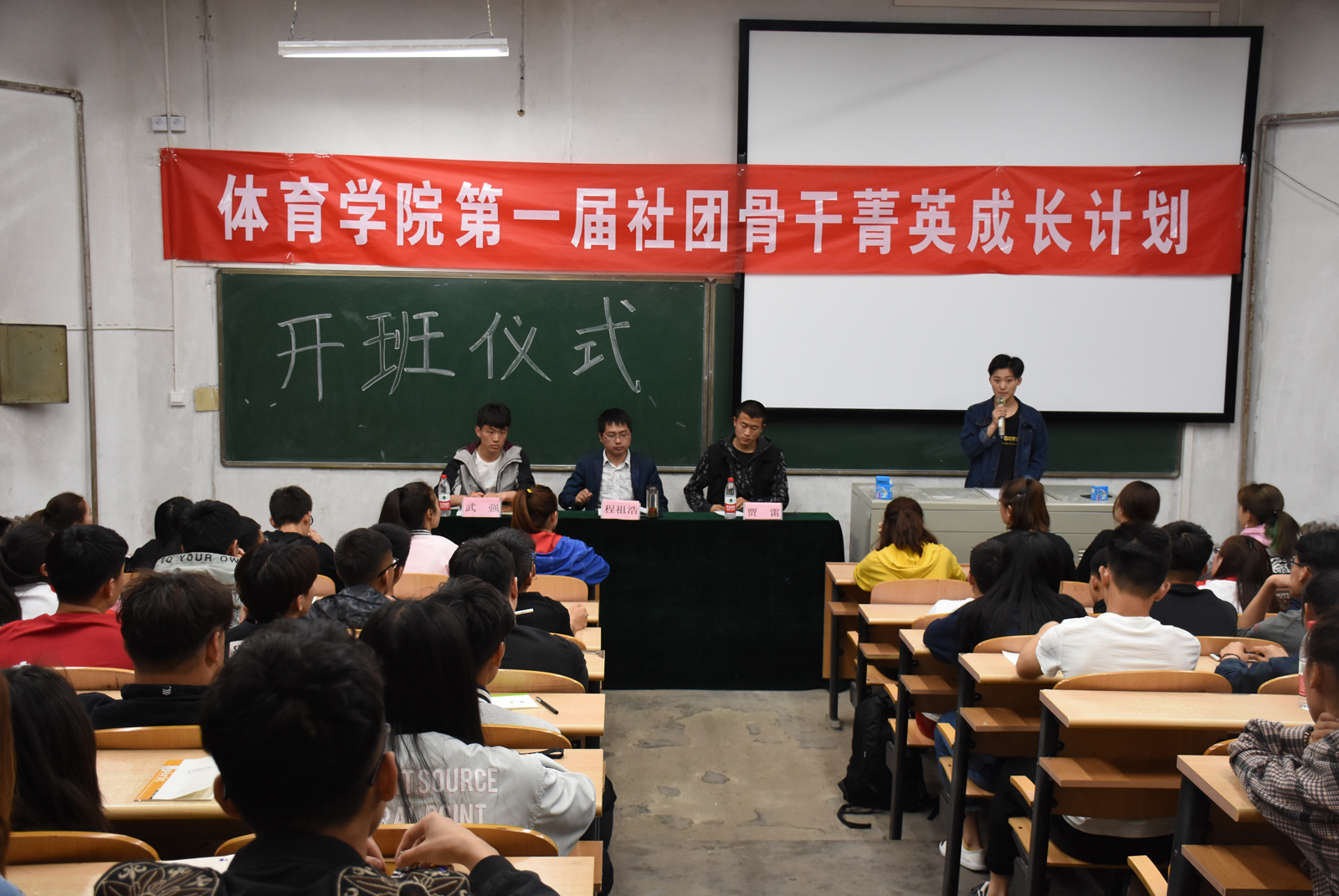 3月30日晚7点30,beat365唯一官网在阶二举办了首届社团骨干菁英成长计划开班仪式。院团委副书记程祖浩老师、院员工会主席贾雷参加了开班仪式,院社联主要负责人和社团优秀骨干共计60余名同学参加。开班仪式由社联王漫同学主持。