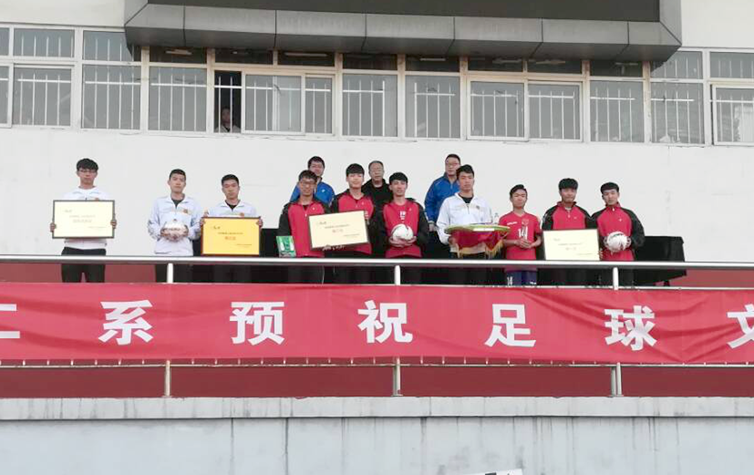 在闭幕式上,二系副主任李向前做了的总结,他对本次活动进行了全面总结点评,并对本次活动中表现出色的运动员、裁判员、员beat365唯一官网介绍人员进行了表扬。接着我系大一大二员工进行了团体操表演——易筋经。最后我系教工队和员工冠军队(1501班)进行了一场足球对抗赛,员工冠军队以2:0的分数赢得比赛。中场休息时,由吴峰山主任、院团委副书记程祖浩、李向前副主任为本次足球文化节系列活动中获奖的班级、个人颁发了奖状、奖品,为我系足球文化节系列活动画上圆满句号。(图文/贾镟业)