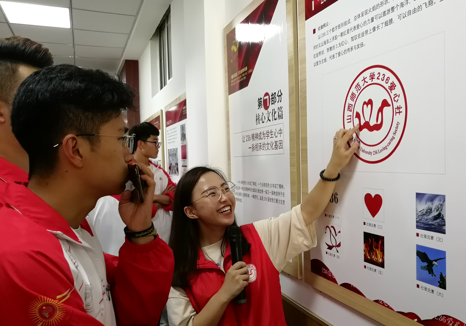 首先,青马学员和员工干部来到236“爱的足迹”文化教育长廊236爱心长廊,由物信学院236爱心社志愿代表张瑜从12个方面介绍了236党支部“两学一做”和“三基建设”暨236爱心社十年成长成果,从历史回眸篇、理论武装篇、志愿服务篇、党建品牌篇、调查研究篇、矢志成才篇、核心文化篇、社会影响篇、荣誉称号篇、桃李芬芳篇、关怀鼓励篇和走向未来篇进行了全面细致的讲解。随后,由戏剧学院孙雨同学带领青马学员参观并讲解了戏剧博物馆内的建筑与展览,大家仔细观看、认真聆听,学员们的疑惑都得到了耐心回答。