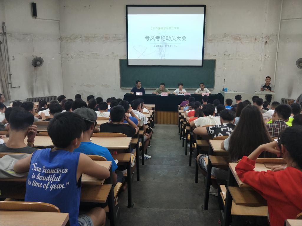 7月3号下午15:30,社会体育系在阶一教室召开了考风考纪教育大会,社会体育系主任陈乐琴、副主任杜治华、辅导员胡奇与邓碾管老师参加了本次会议。