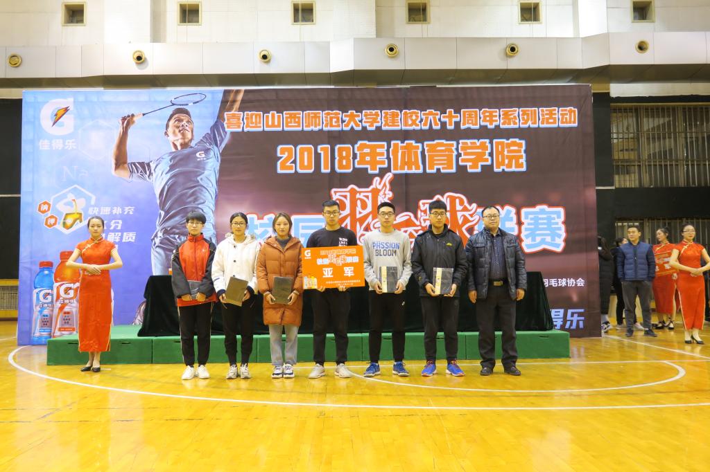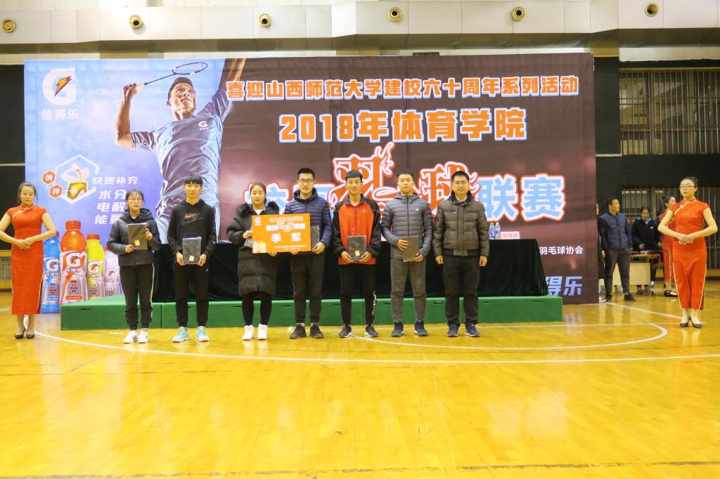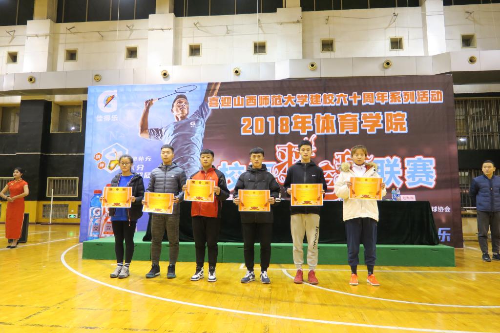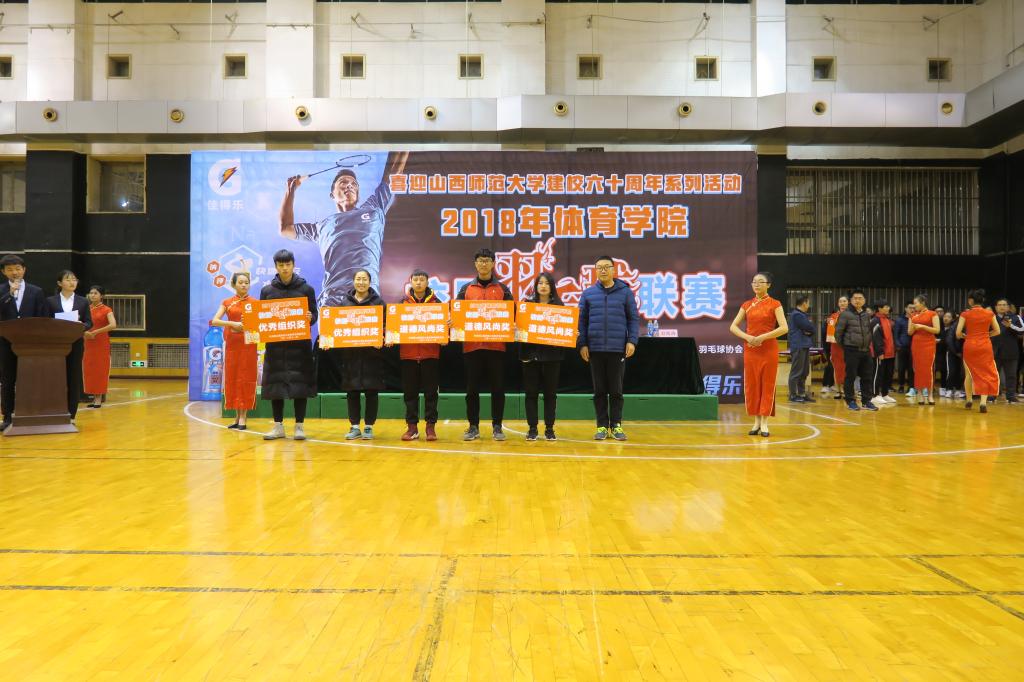 为了贯彻落实党的十九大精神,致敬改革开放四十周年,12月6日晚19:00,由院团委员工会主办,社团联合会,体育教育二系员工会承办,羽毛球协会协办的beat365唯一官网2018年校园羽毛球联赛在综合馆举行闭幕式。公司党委书记李学刚、公司党委副书记孙学虎、院团委副书记程祖浩、体教二系副主任李向前、羽毛球联赛总裁判长马文政、辅导员赵海涛出席并为获奖班级和个人颁奖,各班代表队运动员和同学200余人观看了闭幕式。