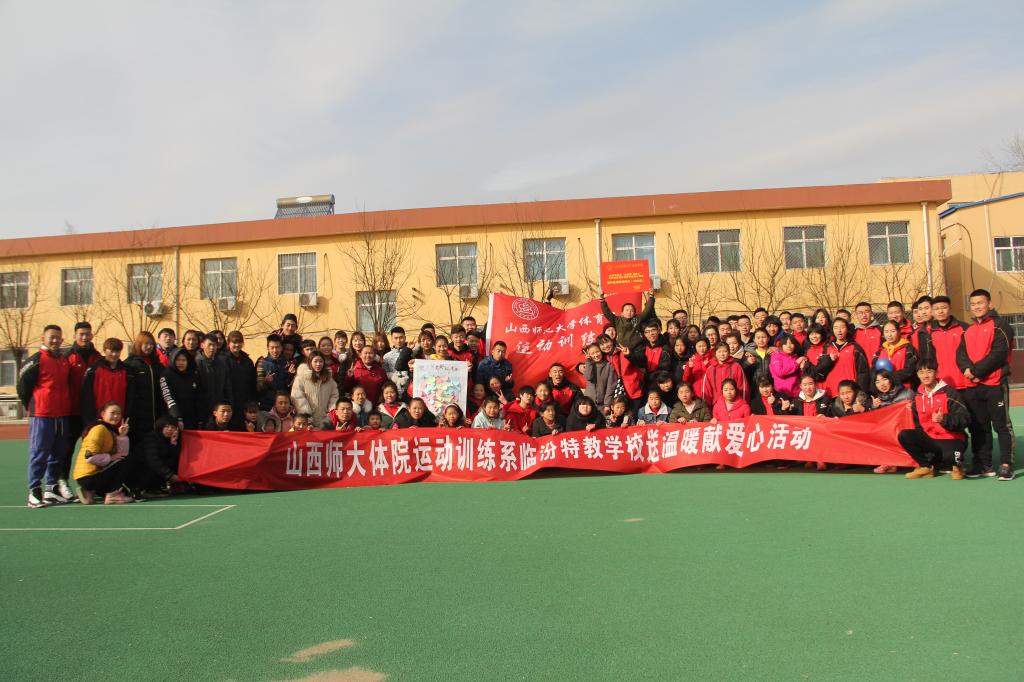 本系特教学校“送温暖、献爱心”公益活动是继2009级侯姝君同学发起的捐助汾西、永和贫困员工、2011级张沙沙同学组织的“红丝带学校献爱心”项目之后,由2012级张嘉芮同学负责策划实施。此后,运动训练系员工干部和衷共济将其发展为系品牌特色活动,每年12月份去特教学校为聋哑儿童送去温暖,已坚持六年为孩子们献上爱心。