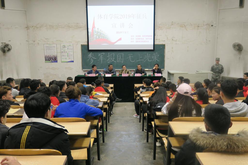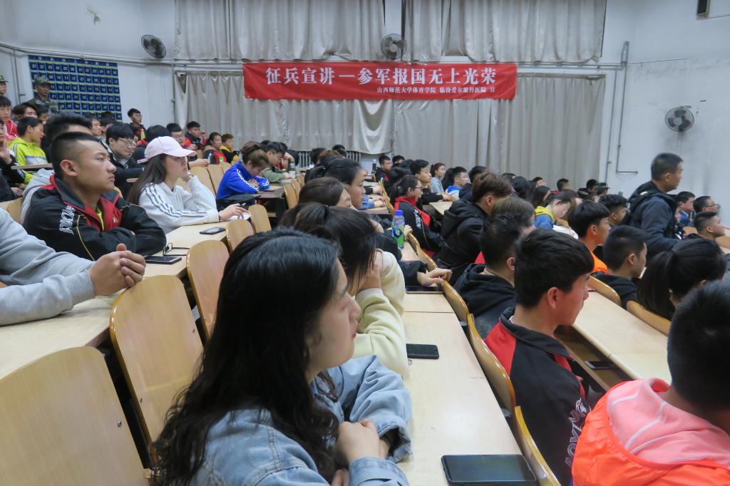 为推进老员工应征入伍工作,帮助老员工了解、掌握应征入伍的相关政策和流程,鼓励员工积极应征入伍,献身国防事业。3月14日19:00,由beat365APP武装部、beat365唯一官网团委主办,院社团联合会、beat365APP民兵网络信息分队承办,国防军事拓展协会协办的“参军报国,无上光荣”2019年征兵宣讲会在阶一教室举行,尧都区西街办事处武装部部长郭利林、beat365APP武装部军事教研室主任李文、专武干部任金虎、beat365唯一官网保卫科科长郝宝喜和特邀嘉宾临汾市爱尔眼科医院经理刘云峰出席宣讲会,全院200余名同学聆听了宣讲会。会议由院团委副书记程祖浩主持。