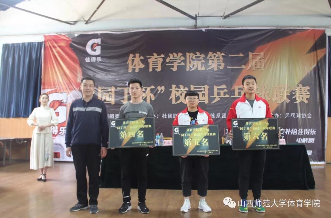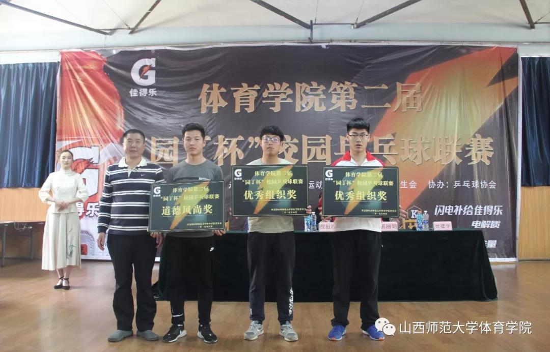 经过十天紧张激烈的角逐,beat365唯一官网第二届“园丁杯”校园乒乓球联赛圆满完成各项赛程。闭幕式上,贾建学老师宣读了获奖班级的名单,其中获得道德风尚奖的班级是运训1702,获得优秀组织奖的班级是运训1801班和体教1703班,获得第六名的班级是运训1803班,第五名的班级是体教1804班,第四名的班级是运训1601班,第三名的班级是社体1601班,第二名的班级是体教1604班,获得第一名的班级是运训1501班。此外还有优秀裁判员任强强,卢正清,郑天承,和优秀运动员赵晓敏,郭佳奇,张红阳。出席闭幕式的老师为获奖集体和个人颁奖。