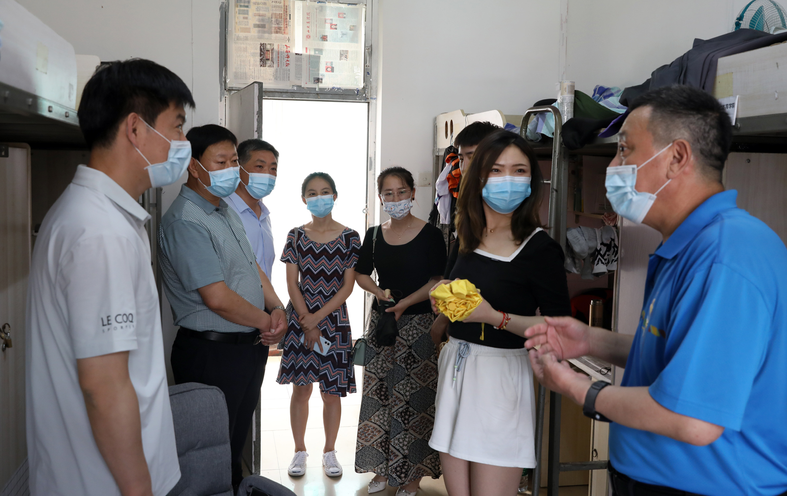 为进一步了解在校生思想动态及诉求,更好的帮助同学们解决实际困难,在端午节到来之际,6月3日-4日,员工工作部(处)长王军峰、学院领导卫建平、郑旗、张大为,团委负责人王丽娜、专职辅导员温志静、高士惠等深入员工宿舍及员工自习室,慰问在校员工。