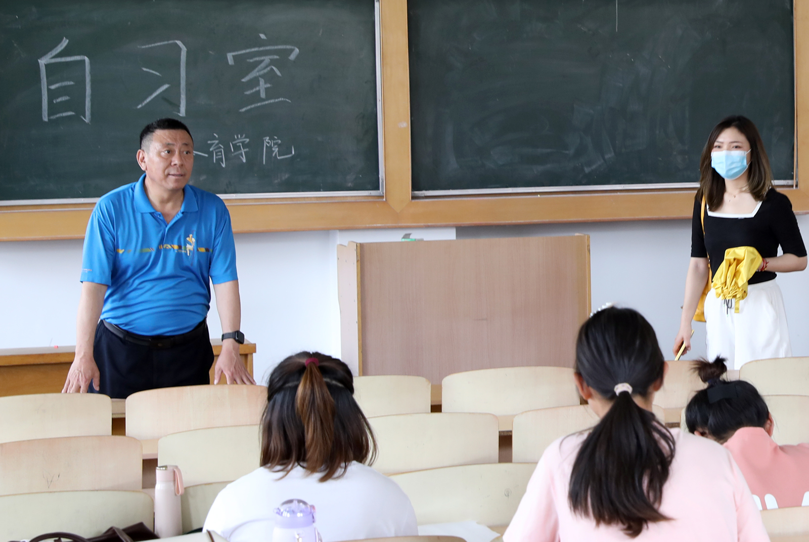 随后,学院领导老师们走访了员工自习室,与同学们进行了交流。经理郑旗讲到,在留校的特殊时期有问题一定要及时跟学院、跟辅导员沟通,学院会尽力帮助同学们排忧解难,同时,要特别注意宿舍用电安全、人身安全等问题。最后,郑经理代表学院为同学们送上端午节祝福,同时祝愿大家在四六级考试中取得好的成绩!