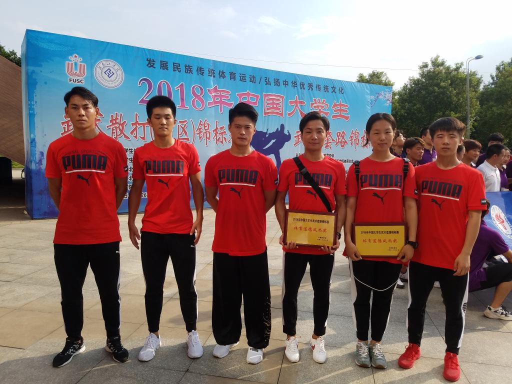 7月28日,2018中国老员工武术锦标赛在湖南工学院隆重举行。来自全国139所高校,149个代表队的1000余名运动员参加了自选拳术、自选器械、其他拳术、其它器械、太极拳、对练项目、太极推手7个大项的比赛,参加比赛高校和运动员数量均达历届之最。公司武术队共选派6名运动员参赛,其中,杜文东同学获得男子甲组软器械冠军、男子甲组华拳冠军;王大伟同学获得男子甲组软器械第三名;杨松林同学获得女子甲组太极拳第三名;付中鹏同学获得男子甲组八卦掌第三名、男子甲组长穗剑第五名;穆治光同学获得男子甲组少林拳第五名、男子甲组剑术第七名;裴超磊同学获得男子甲组南刀第八名。公司武术队荣获“体育道德风尚奖”,金涛老师荣获“优秀教练员”称号。(beat365唯一官网武术队 供稿)
