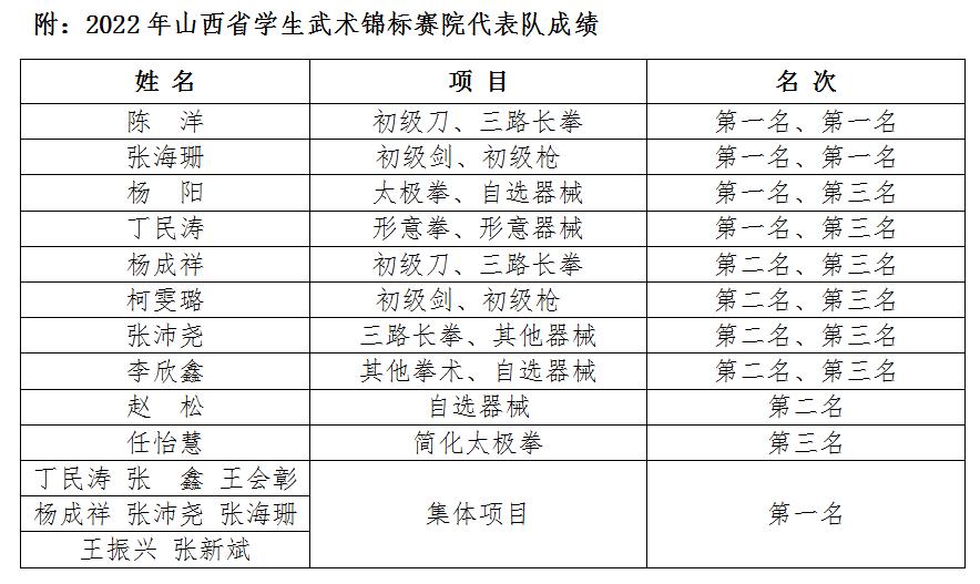 11月18日至21日,由山西省教育厅、山西省体育局主办,山西中医药大学承办的2022年山西省员工武术锦标赛在山西中医药大学举行。受疫情影响,本次锦标赛在线上进行。