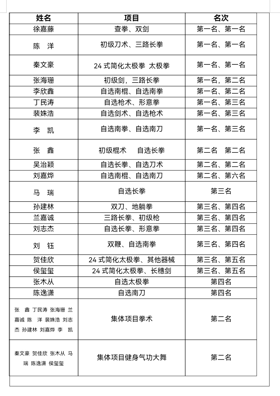 公司参赛运动员通过20余天的集中训练,在刘剑教练和金涛教练的指导下,不怕酷暑、不畏强手,奋力拼搏、团结协作,以饱满的精神状态和精湛的功夫技艺,展现了师大学子昂扬向上的精神风貌。刘剑老师和金涛老师被评为优秀教练员,丁民涛和秦文豪评为优秀运动员,为学校获得了荣誉。