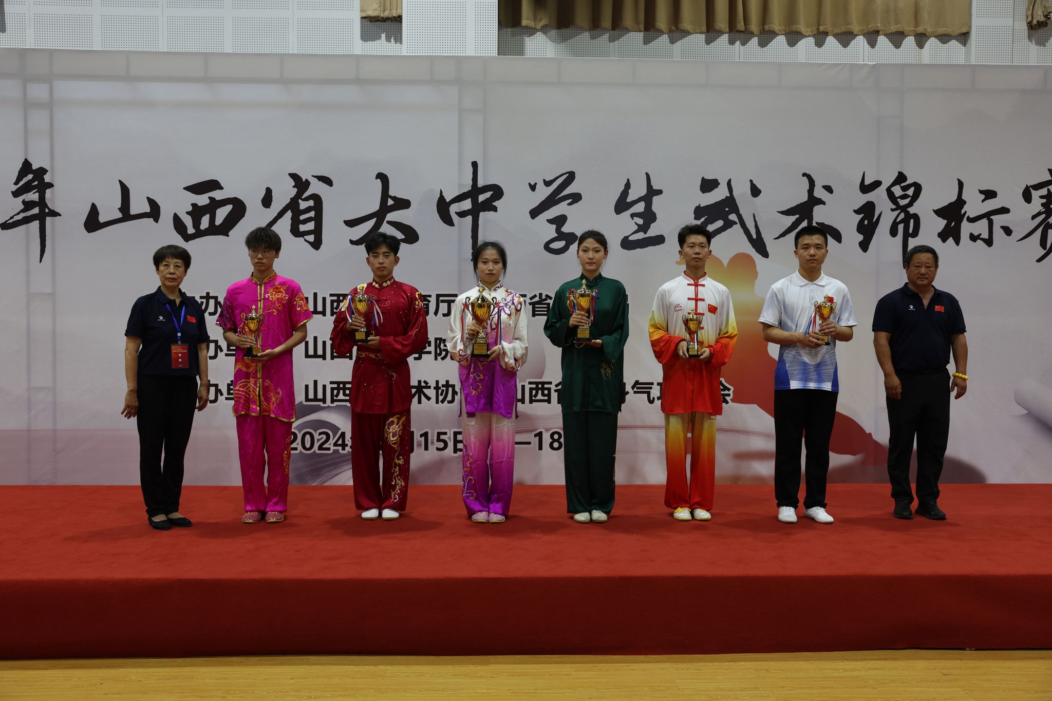 2024年7月15日——18日,山西省大中员工武术锦标赛在山西工商学院武术馆隆重举行。公司武术代表队20名运动员在学院王江副经理、主教练刘剑和金涛教练带领下参加比赛,共获得团体总分第二名和个人单项金牌总数第一名的优异成绩,其中金牌11枚,银牌7枚,铜牌10枚。
