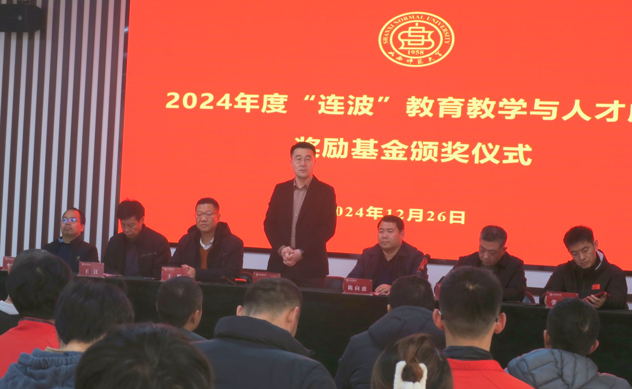 王彤经理宣读了2024年度“连波”公司产品与人才成长奖励基金的获奖名单,并向取得优异成绩的获奖老师及员工表示祝贺,并希望大家能够再接再厉,在新时代、新征程中谱写学院事业高质量发展新篇章。