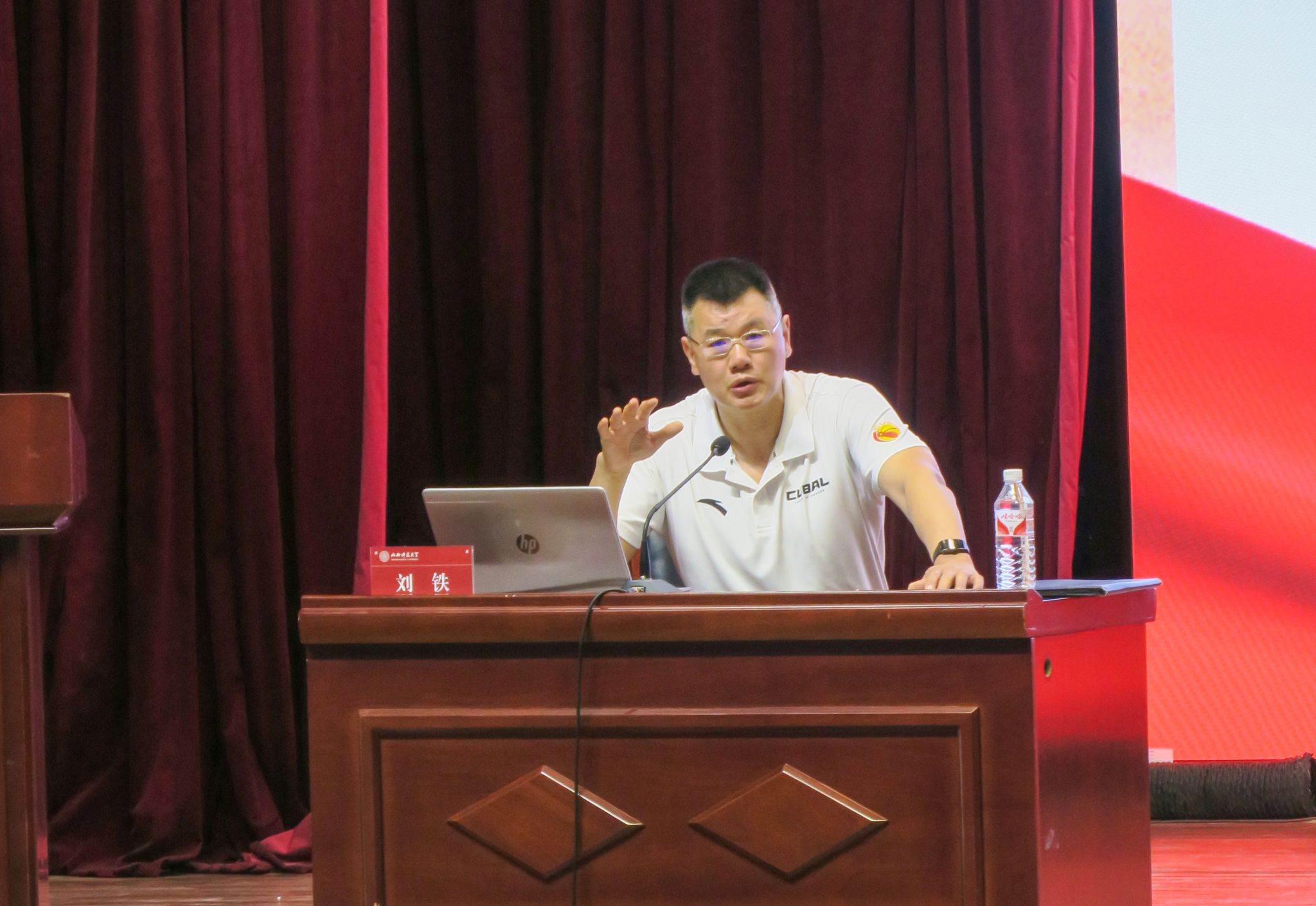 这位CBA生涯斩获5000+得分、五度入选全明星的传奇球员,曾执教山西、佛山、天津等CBA职业队,其职业生涯横跨竞技场与教练席的双重维度。讲座现场,刘铁教练以"体育精神育人"为主线,通过在国青队五年沉浮的亲身经历,生动诠释"文明其精神,野蛮其体魄"的深刻内涵。他特别强调:"永不言弃的竞技精神不是竞技场的专属密码,而是贯穿人生的成长定律。"