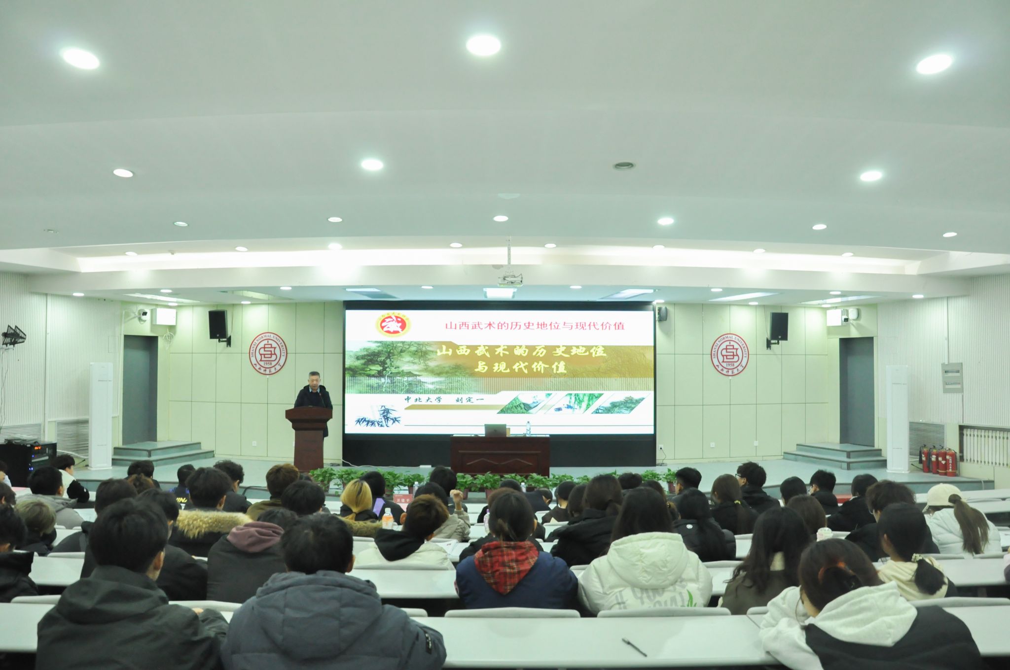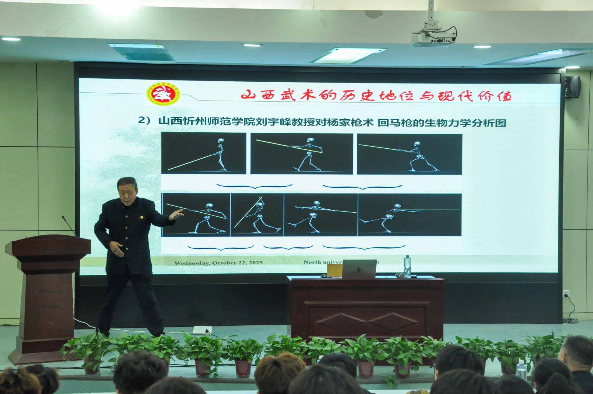 10月22日晚,公司在图书馆报告厅举办第八期体育思政大讲堂——2025年武术主题报告会。中北大学体育健康与艺术学院原经理刘定一教授作了题为《山西武术的历史地位与当代价值》的报告。公司党委书记卫建平、党委副书记张大为、武术与民族传统体育系主任权黎明、副主任赵海涛、部分教师以及二百余名员工代表到场聆听报告。报告会由卫建平书记主持。