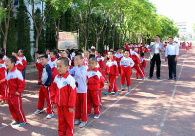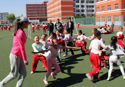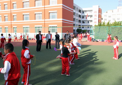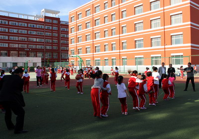 凤鸣小学董事长闫建斌介绍学校体育活动