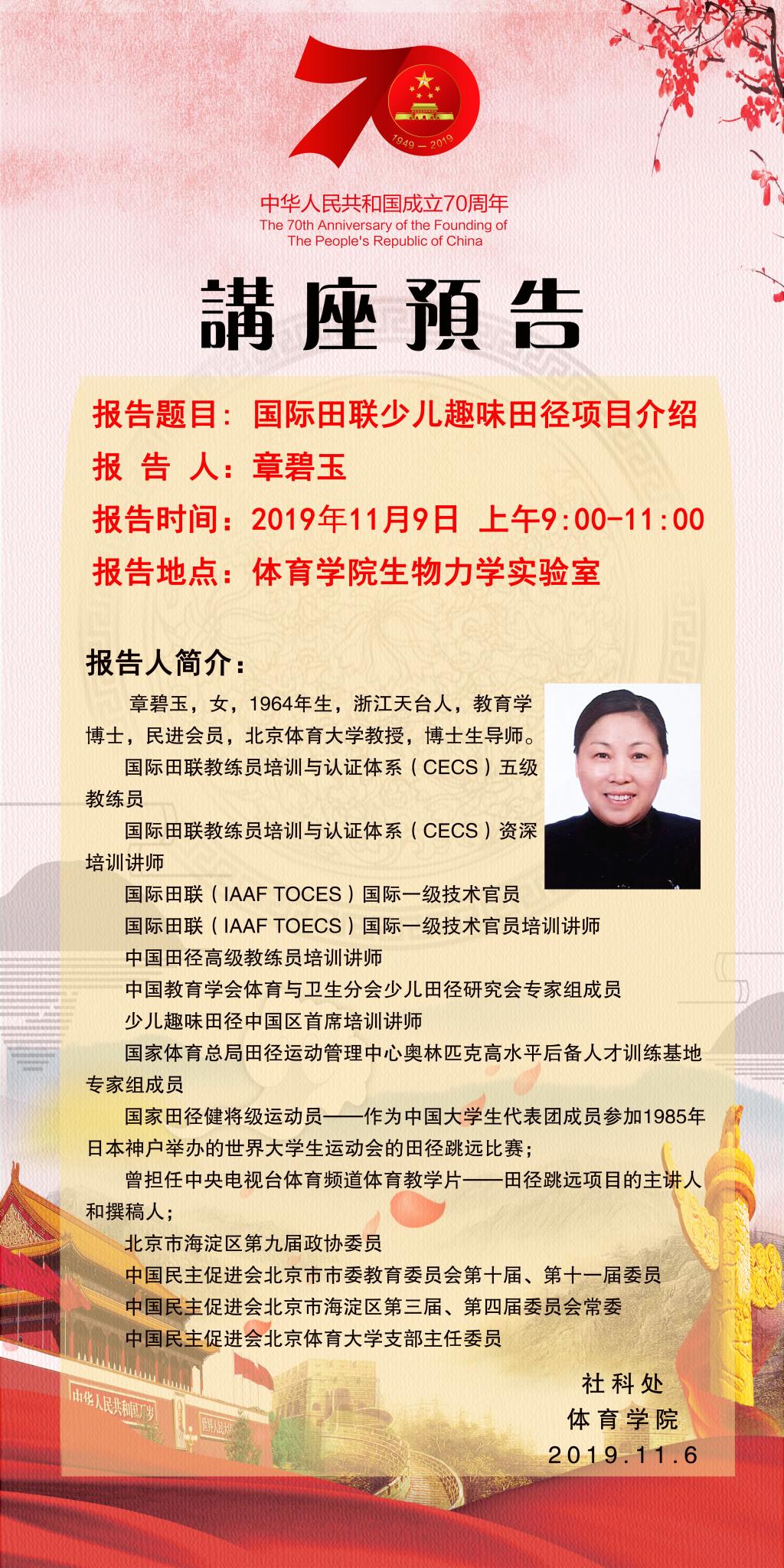 北京体育大学博士生导师章碧玉教授来公司做学术报告