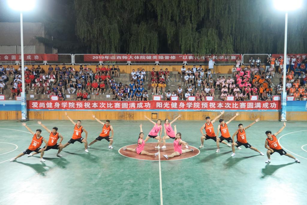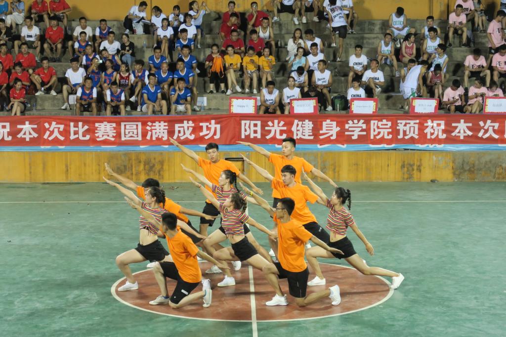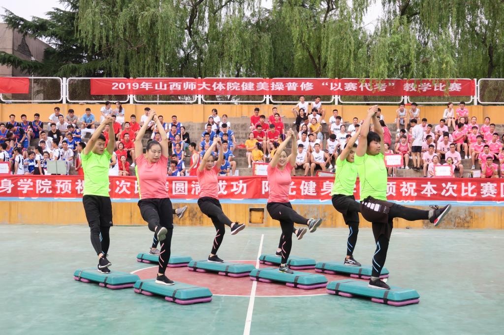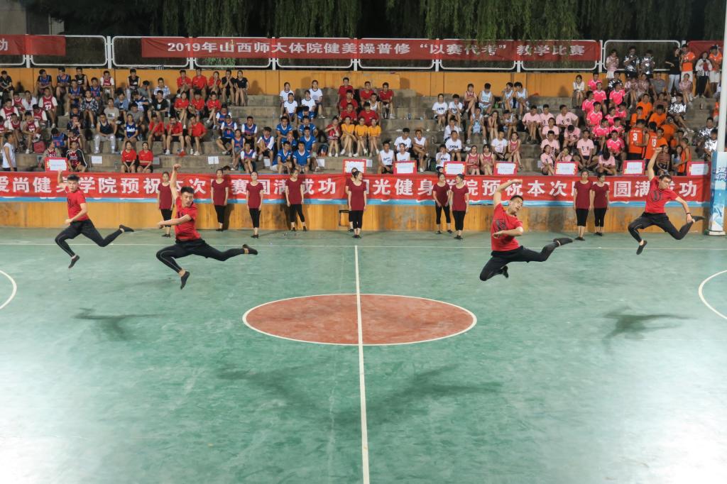 为了纪念五四运动100周年和新中国成立70周年,进一步促进课堂教学改革,提高公司员工健美操专业水平,活跃了校园文化氛围,6月14日19:00,由beat365唯一官网教务科、健美操课程组主办、院团委承办、阳光健身学院、爱尚健身学院、福斯健身学院协办的2019年健美操普修“以赛代考”教学比赛在灯光篮球场举行。公司党委书记李学刚、公司党委委员、经理郑旗、体育教育系主任张杰、社会体育系主任孟春雷、院团委副书记程祖浩、社会体育系副主任李俊明、体育教育二系副主任张学龙老师出席了比赛。