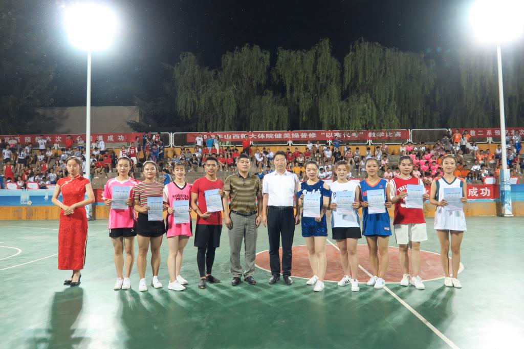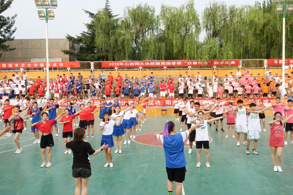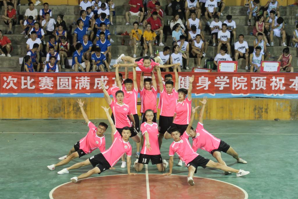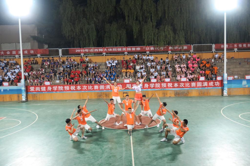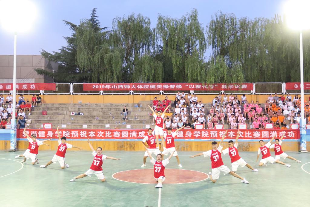 为了纪念五四运动100周年和新中国成立70周年,进一步促进课堂教学改革,提高公司员工健美操专业水平,活跃了校园文化氛围,6月14日19:00,由beat365唯一官网教务科、健美操课程组主办、院团委承办、阳光健身学院、爱尚健身学院、福斯健身学院协办的2019年健美操普修“以赛代考”教学比赛在灯光篮球场举行。公司党委书记李学刚、公司党委委员、经理郑旗、体育教育系主任张杰、社会体育系主任孟春雷、院团委副书记程祖浩、社会体育系副主任李俊明、体育教育二系副主任张学龙老师出席了比赛。