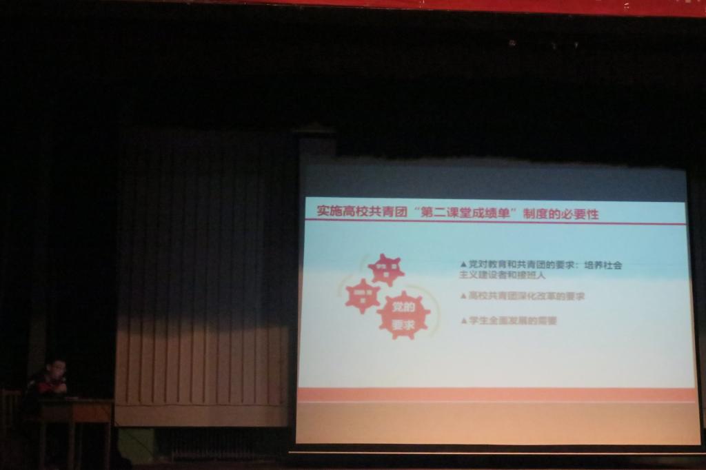 为进一步增强2019级新生团员意识,提升团员的政治性和先进性,坚定新生团员理想信念,加深对共青团的认识,培养新生团支部组织能力、创新能力,夯实团的基层建设。10月22日晚19:00,院团委在大礼堂举行2019级新生入团再教育暨“第二课堂成绩单”制度培训大会。院团委副书记程祖浩老师和员工团委副书记刘敏坤、院团委常委王晓晓出席,院系主要团学干部及全体大一新生参加本次大会。大会由员工团委副书记段振海主持。