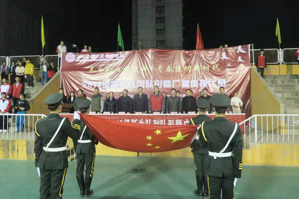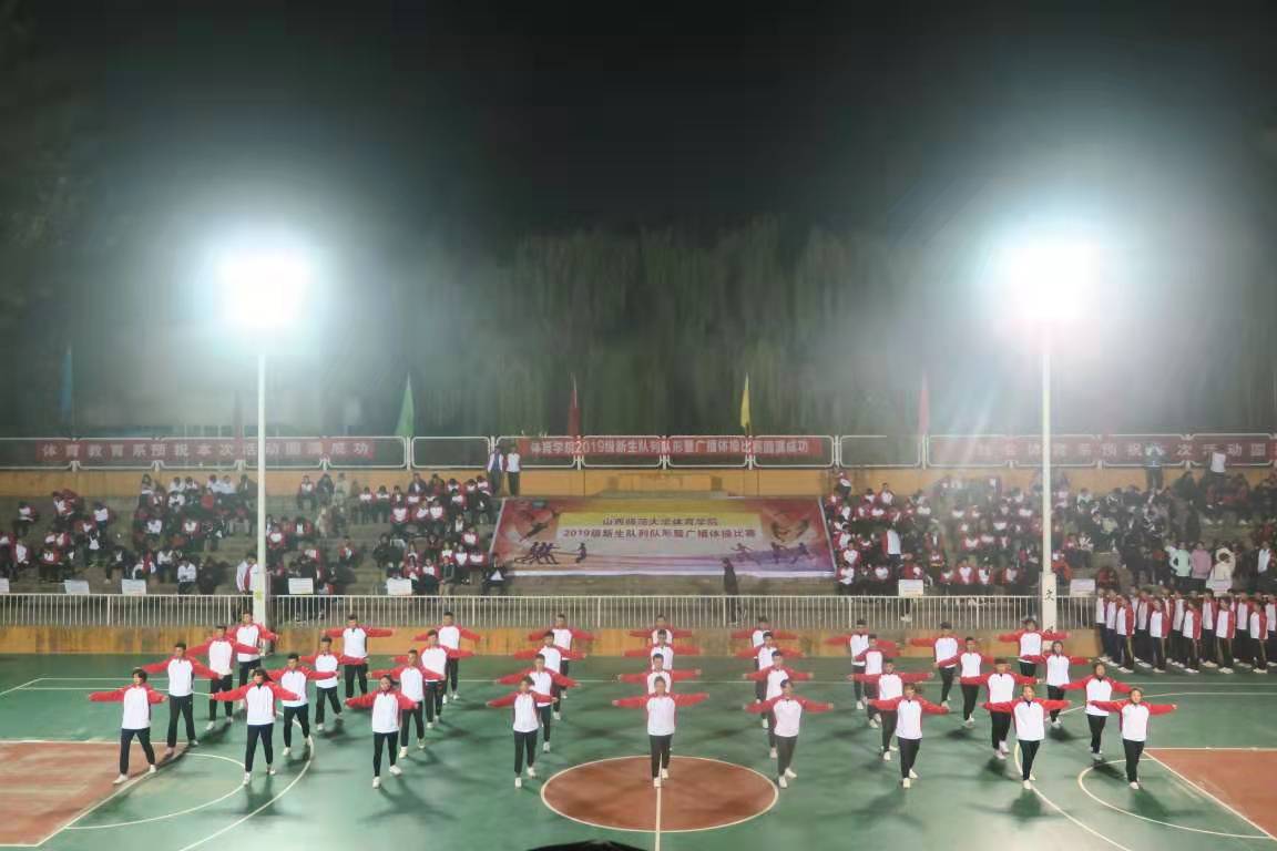 为庆祝中华人民共和国成立70周年,深入学习贯彻落实党的十九大精神和全国教育大会精神,进一步加强爱国主义教育,积极推进公司体育教学实践活动的开展,11月8日晚上18:30,beat365唯一官网在灯光篮球场举办了以“不忘初心担使命、青春建功新时代”为主题的2019级新生队列队形暨广播体操比赛。公司党委书记许国宝、公司党委委员、体育教育系主任张杰、院工会主席赵道卿、及各系负责人观看了比赛,郭丽娟、张秀珍、黄志高、王红芳、王永明老师担任本次比赛的裁判员,裁判长由郭丽娟老师担任,2019级全部新生班级参加比赛。