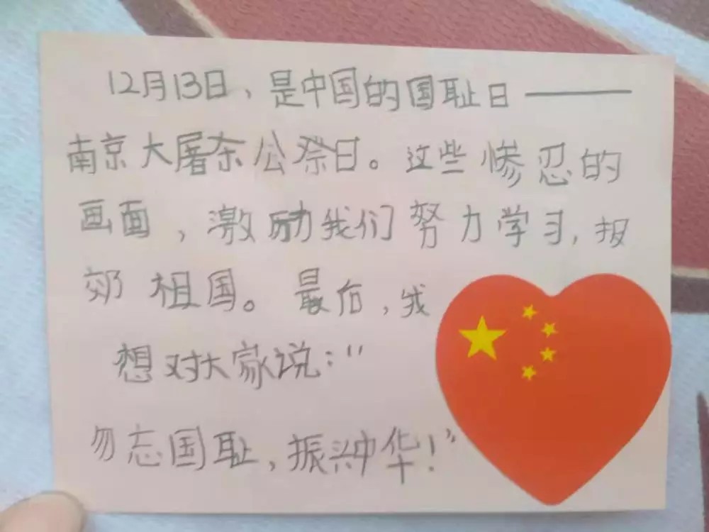 通过本次活动,同学们纷纷表示,作为一名中国人,一定不能忘记国耻,要铭记“落后就会挨打”的历史教训,要发奋图强,刻苦学习,努力钻研科学知识,将来更好地建设伟大的祖国,让我们的祖国更加繁荣富强。(文字来源:“蒲公英”志愿者服务队)