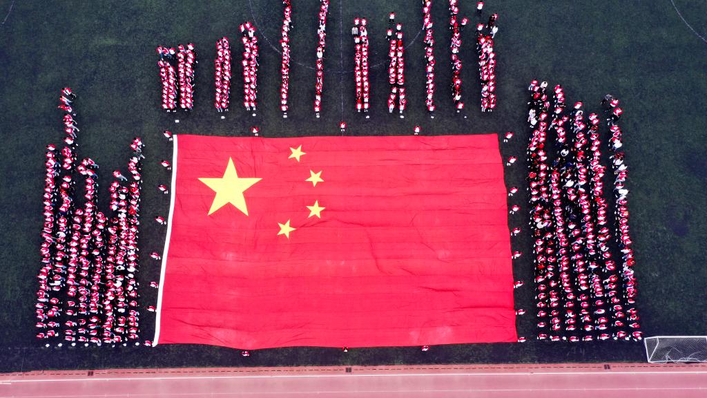 随后,在《我和我的祖国》歌声中,一幅30米*18米的国旗徐徐展开,全体师生共唱《我和我的祖国》,爱国主义情怀油然而生,表达着对祖国最真挚的祝福,希望祖国明天更加繁荣昌盛。