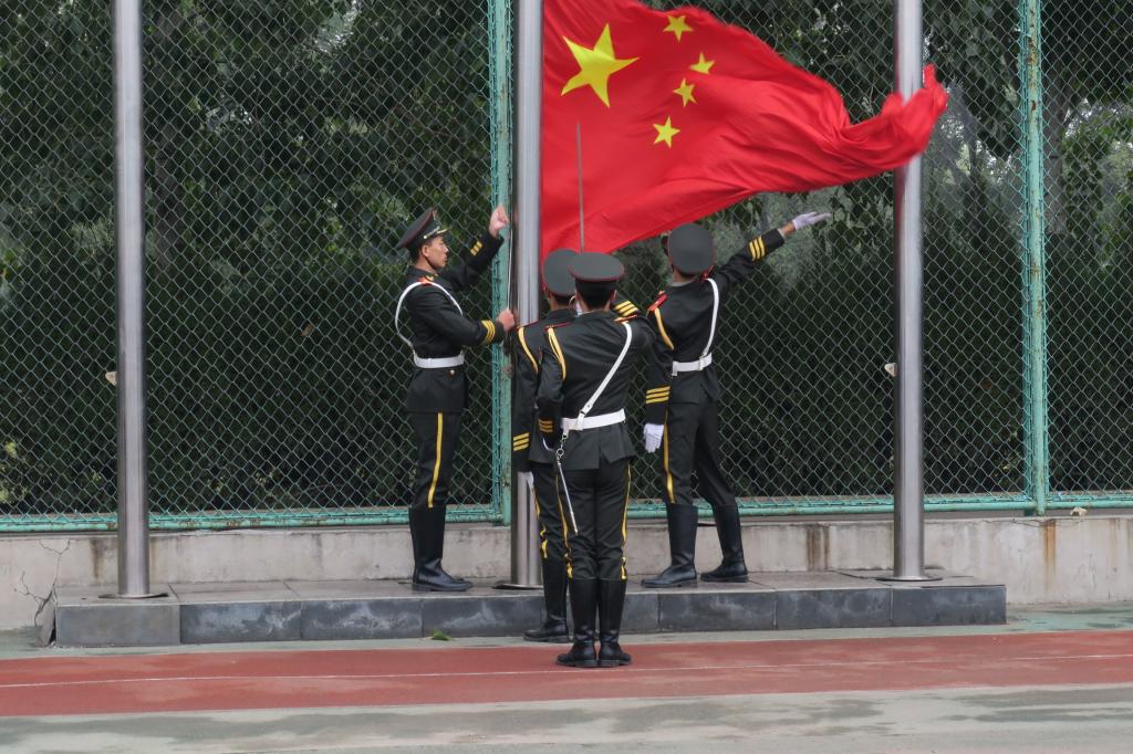 beat365唯一官网国旗护卫队队员护送着国旗,踏着整齐的步伐走向升旗台,在雄壮的国歌声中,鲜艳的五星红旗冉冉升起,迎风飘扬,全体师生面向国旗行注目礼,表达最崇高的敬意。