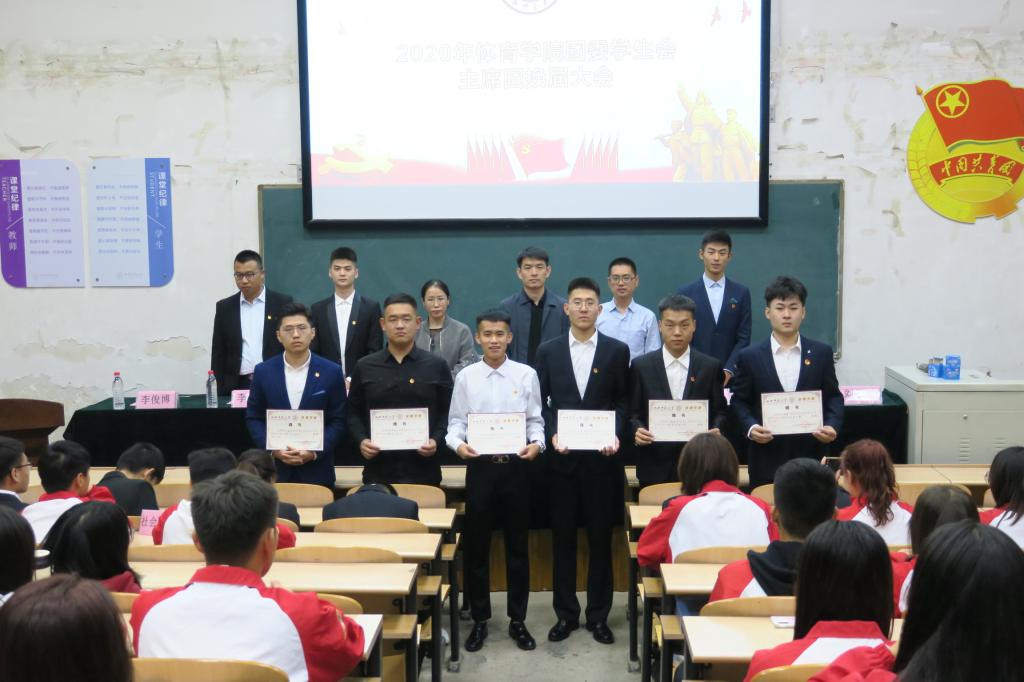 大会在庄严肃穆的国歌声中拉开序幕。首先,上一届主席团代表、运训1703班李俊博同学做工作总结,参会老师为上一届院团委员工会主席团成员颁发表彰证书。