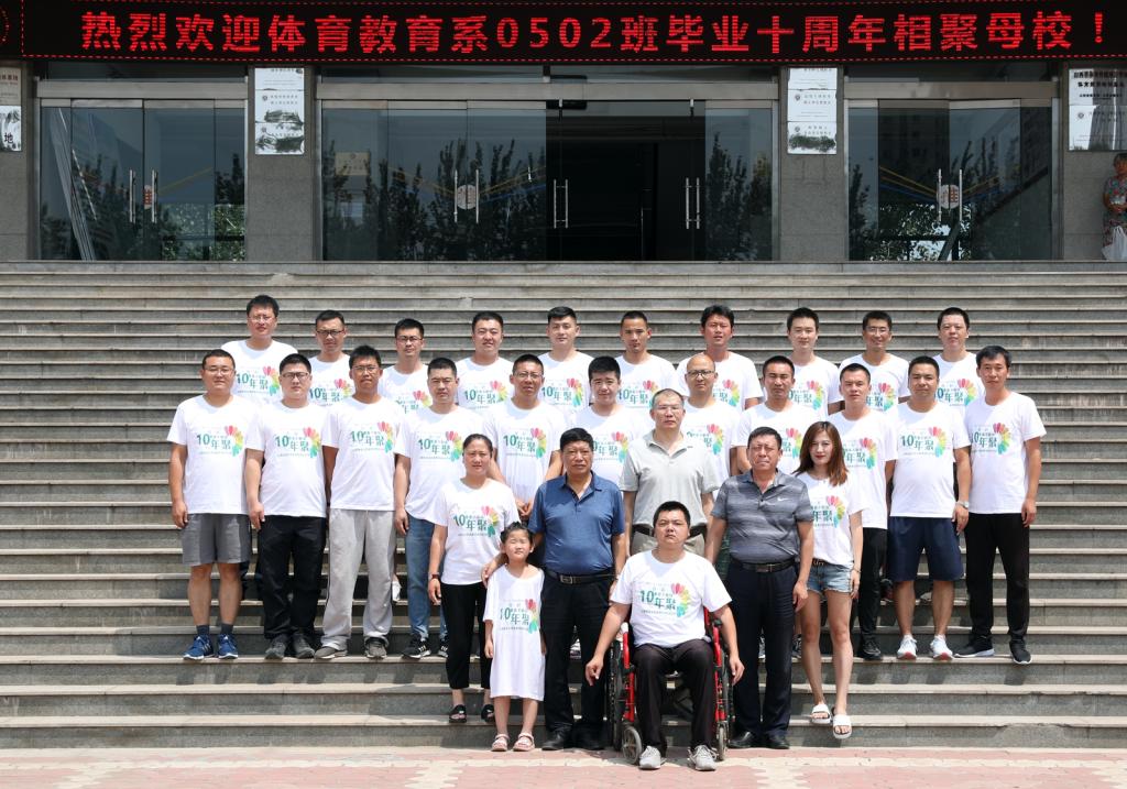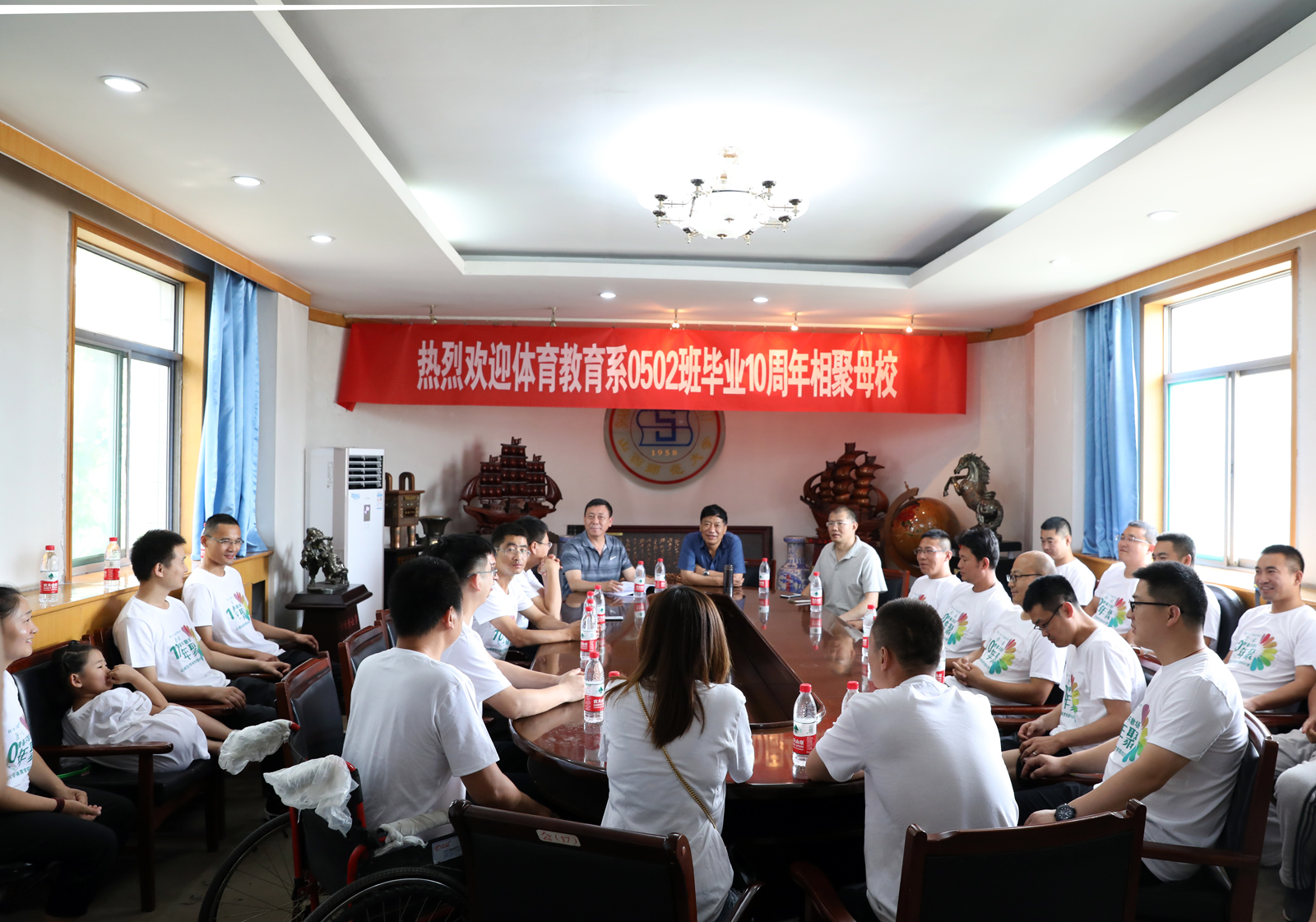 7月14日上午,公司体育教育系0502班同学毕业十年相聚母校,公司党委书记李学刚、经理郑旗、辅导员王泽杰参加座谈会。