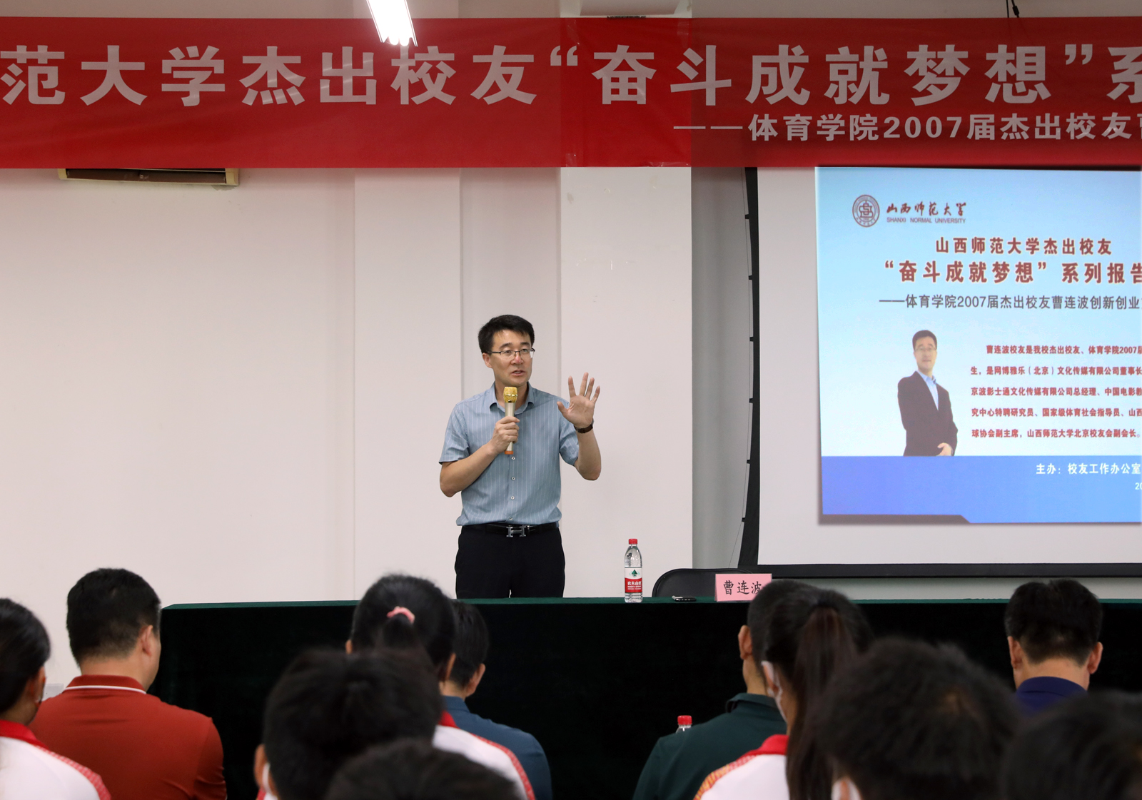 8月24日下午,beat365APP杰出员工“奋斗成就梦想”系列报告会在beat365唯一官网7号楼2层心理实验室举行,beat365唯一官网2007届杰出员工曹连波与师生分享创新创业经验和心得体会。报告会以线上线下相结合的方式进行。员工办公室主任、国内合作处处长陈向波,公司领导班子成员、各系部负责人、辅导员老师、教练员代表以及50名员工在现场参加报告会,200余名员工代表在线上聆听了报告。会议由公司党委书记卫建平主持。