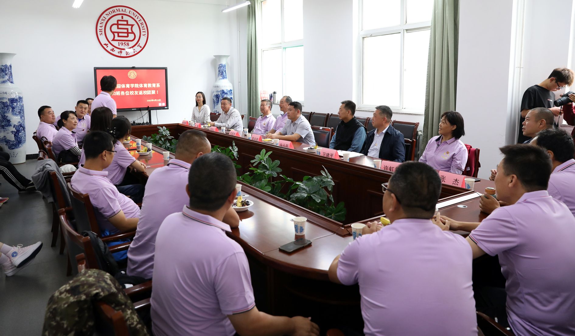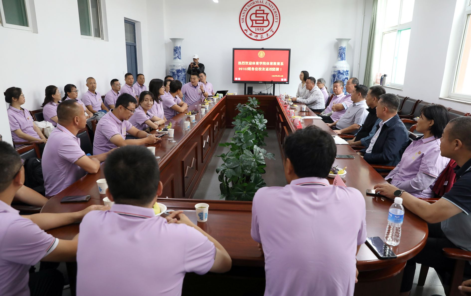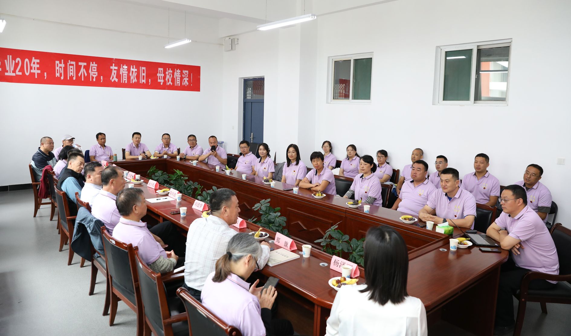 9月23日,公司体育教育系99102班同学毕业20周年重返母校,回顾青春岁月,重温师生情谊。国内交流与合作部部长、员工工作办公室主任陈向波,公司党委书记卫建平、经理郑旗,体育教育系主任张杰,时任公司党委副书记杨金山、体育教育系主任刘进学、体育教育系教学秘书许虹筠、99102班辅导员杨泽丽等参加员工座谈会。20余名员工及家属从各地赶来参加了座谈会。座谈会由99102班留校教师、现任公司化学与材料科学公司党委书记任懿主持。