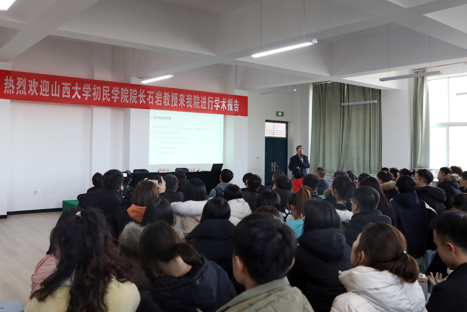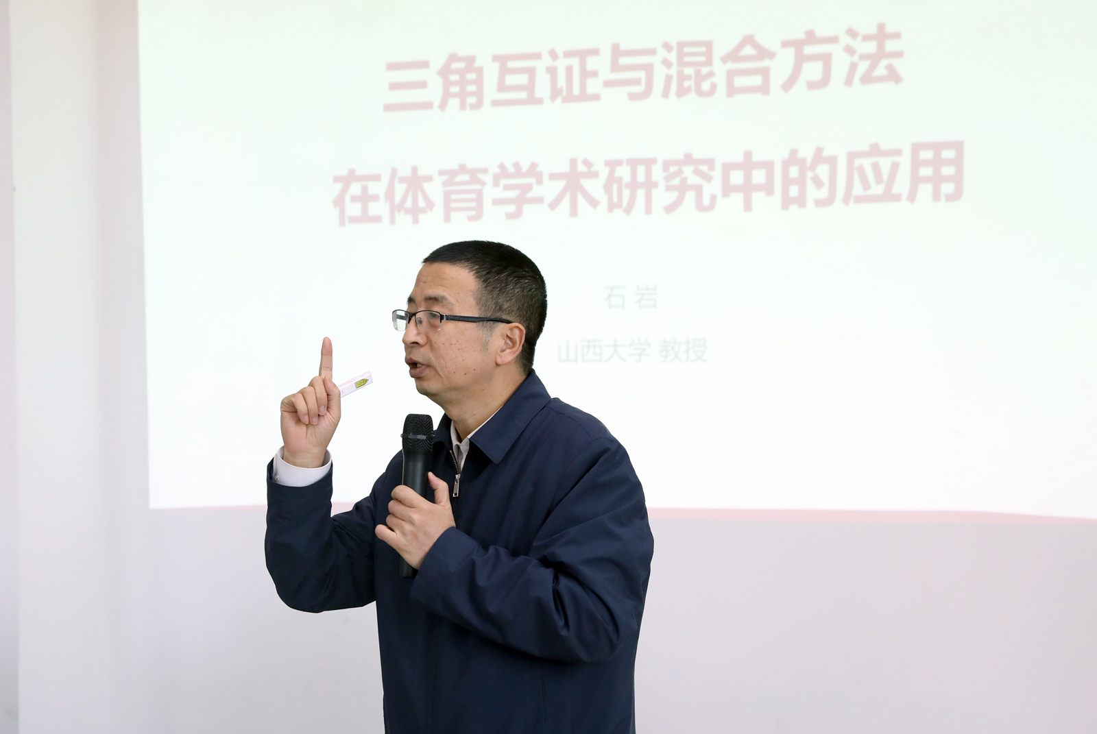 12月16日下午,在南校区7号楼体育心理学实验室,山西大学博士生导师、初民学院经理石岩教授应邀为公司师生进行了《三角互证与混合方法在体育学术研究中的应用》的学术报告。报告会由院研究生部主任李海伟主持,公司部分教师及研究生参加了学术报告会。