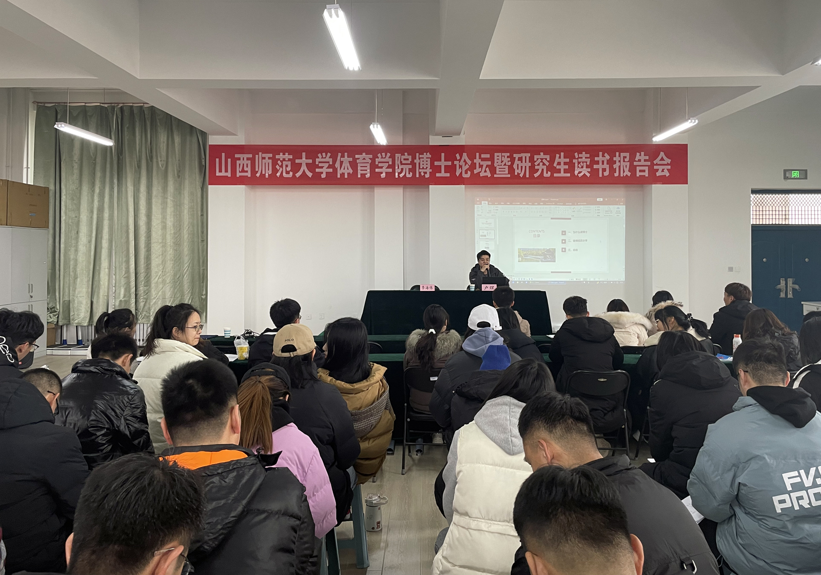 12月23日上午,在南区7号教学楼运动心理实验室举办公司博士论坛第三讲,此讲由新进教师卢煜博士主讲,院研究生部主任李海伟主持,学院2021级研究生参加。卢煜博士结合自己在韩国龙仁大学武道学科的读博经历,与同学们分享了国内高校和韩国高校在学习等方面差异,并与同学们进行了交流互动,鼓励同学们要对自身发展有明确要求,在学术领域要立志追求,激励大家提高综合素质,求真学问,练真本领,更好的服务于学校和社会的发展。(院研究生部供稿)