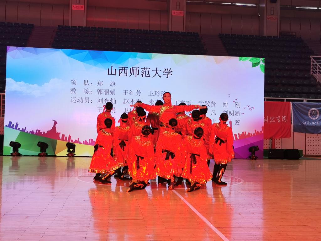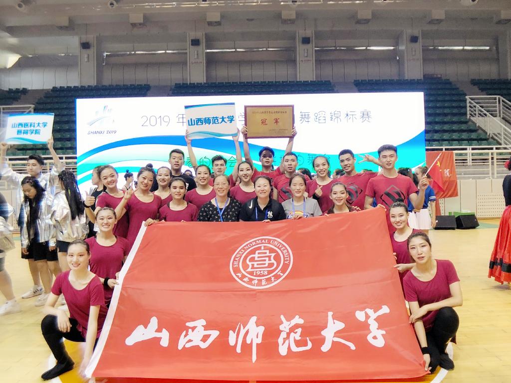 7月28日,由山西省教育厅、山西省体育局主办2019年山西省员工运动舞蹈锦标赛在太原科技大学落下帷幕,来自太原理工大学、太原科技大学、中北大学、晋中学院等14所高校以及12所中小学的641名运动员参赛。公司民族健身操队在教练员郭丽娟、王红芳、卫玲玲的指导下,共派出了18名运动员参加了本次大赛,经过两天的激烈角逐,夺得普通院校组“中国舞大集体”冠军奖项,并荣获“最佳人气奖”。赛前经理郑旗来到训练场馆看望员工们的训练情况,对同学们夏练三伏,备战全国第十一届民运会和参加本次比赛表示了慰问和关怀,并提出了赛出风格,赛出水平的要求,希望民族健身操队能展示出山西体育文化特色、师大学子的风采!据悉,全国第十一届民族运动会将于9月份在河南郑州举行,公司受山西省民委、省体育局委托,将代表山西省参加民运会的表演项目,参加山西省员工运动舞蹈锦标赛是一次难得的练兵,期待校民族健身操在民运会比赛中取得优异成绩,为山西争光,为师大添彩!(民族健身操队供稿)