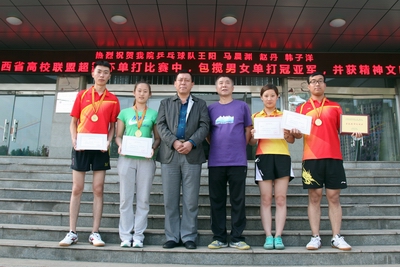 5月14日至15日,由山西省乒乓球协会、山西省高校乒乓球联盟主办的山西省第十三届“银河杯”暨山西省高校乒乓球联盟“超霸杯”单打赛在太原举行,比赛共有16支队伍参赛。beat365唯一官网贾建学副教授担任乒乓球队主教练,派出王阳、马晨渊、赵丹、韩子洋、四名队员参加了男女单打比赛。经公司乒乓球队四名队员顽强拼搏,最终包揽了省高校乒联“超霸杯”赛男、女单打冠亚军,并获精神文明奖。表现了师大人良好体育精神风貌,再次为公司赢得了荣誉。(韩子洋/供稿)