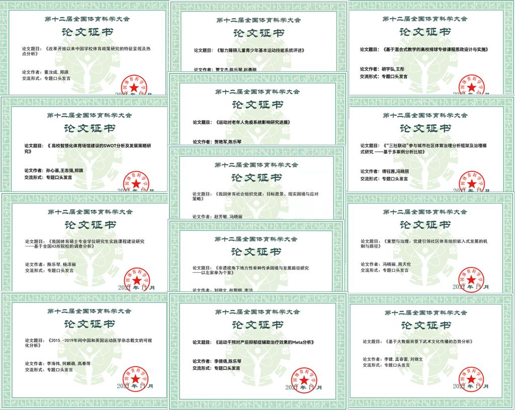 据悉,全国体育科学大会是我国最大、最隆重的体育学术盛会和交流平台,此前每四年举办一届,自本届开始调整为每两年举办一届。学院高度重视此次全国体育科学大会,动员师生积极报送学术论文,通过学术交流开阔师生的学术视野,努力扩大体育学科的社会影响力,提升师生科研能力和人才培养质量。(院研究生部供稿)