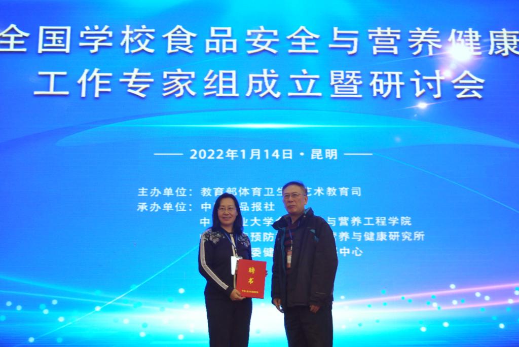 1月14日,由教育部体育卫生与艺术教育司主办,中国食品报社、中国农业大学食品科学与营养工程学院、中国疾病预防控制中心营养与健康研究所承办的全国学校食品安全与营养健康工作专家组成立大会暨研讨会在云南昆明举行,公司白彩琴教授受聘为全国学校食品安全与营养健康工作专家组成员。会上还举行了学校食品安全与营养教育工作校园行活动启动仪式。