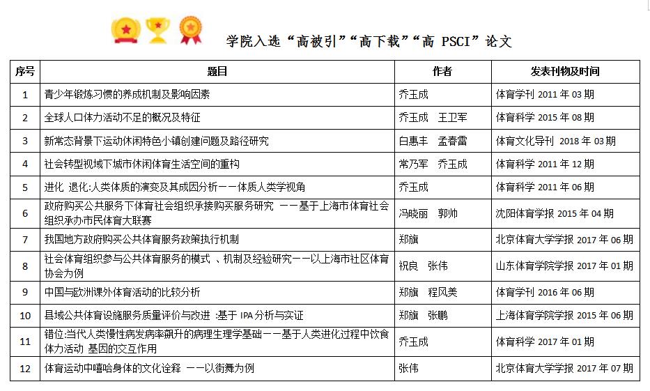 近日,中国知网《学术精要数据库》(https://xsjy.cnki.net/)基于中国知网资源总库发布了2011以来各学科高影响力论文,包括高被引论文、高下载论文与高PCSI(论文引证标准化指数)论文。公司师生共47 篇论文入选,其中“三高”论文 12 篇,“双高”论文 9 篇,“单高”论文 26 篇,入选论文数量在区域高等学校体育院系中位列考前,在此向各位入选作者表示热烈祝贺!学院始终坚持高水平科研成果导向,积极引导教师申报承担高水平课题,产出高水平学术成果,持续提升公司师生学术水平和体育学学科影响力,推动学院高质量内涵式发展,助力特色鲜明的综合性一流师范大学建设。