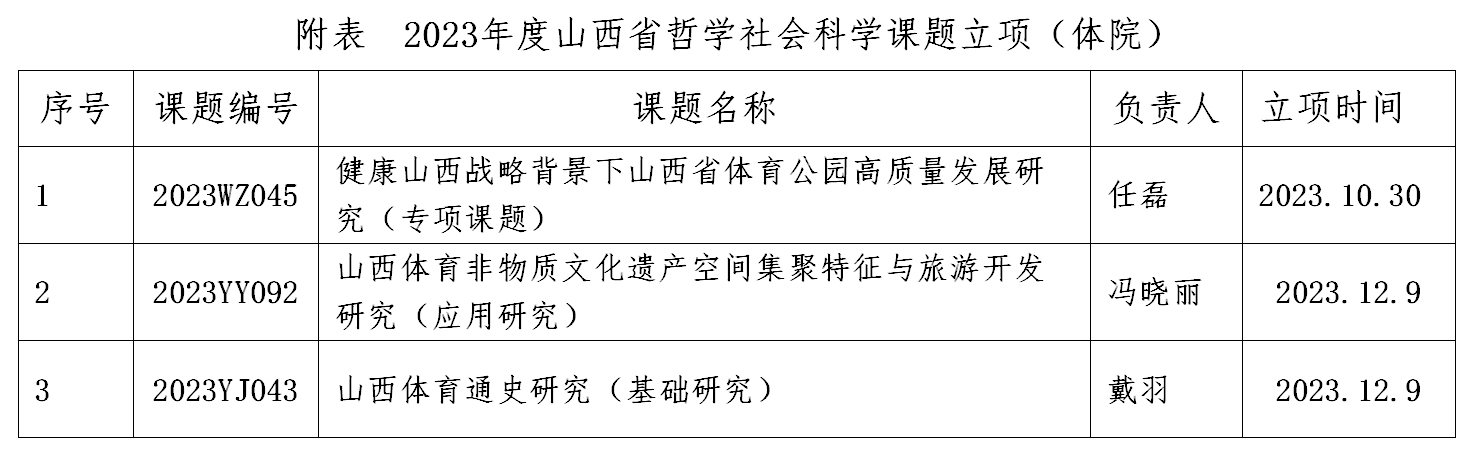 根据山西省哲学社会科学规划办文件通知,公司教师任磊、冯晓丽、戴羽申报的课题获批立项(见附表)。课题分为专项课题和年度一般课题,课题给予不同经费资助。山西省哲学社会科学规划办要求严把政治方向关和学术质量关,扎实开展研究工作,并按期结项。(学院办公室)